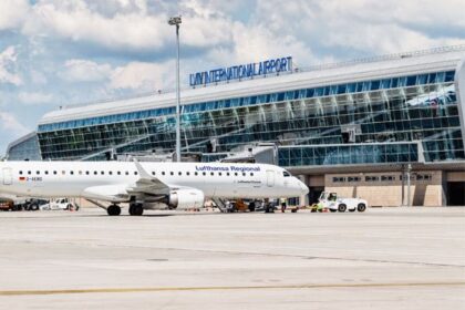 Lwowski port lotniczy znajduje się przy ulicy Lubins`kiej, ok. 7 km od centrum miasta. Lwów znajduje się na międzynarodowych szlakach lotniczych z Wiednia (Austrian Airlines), Frankfurtu nad Menem (Uk...